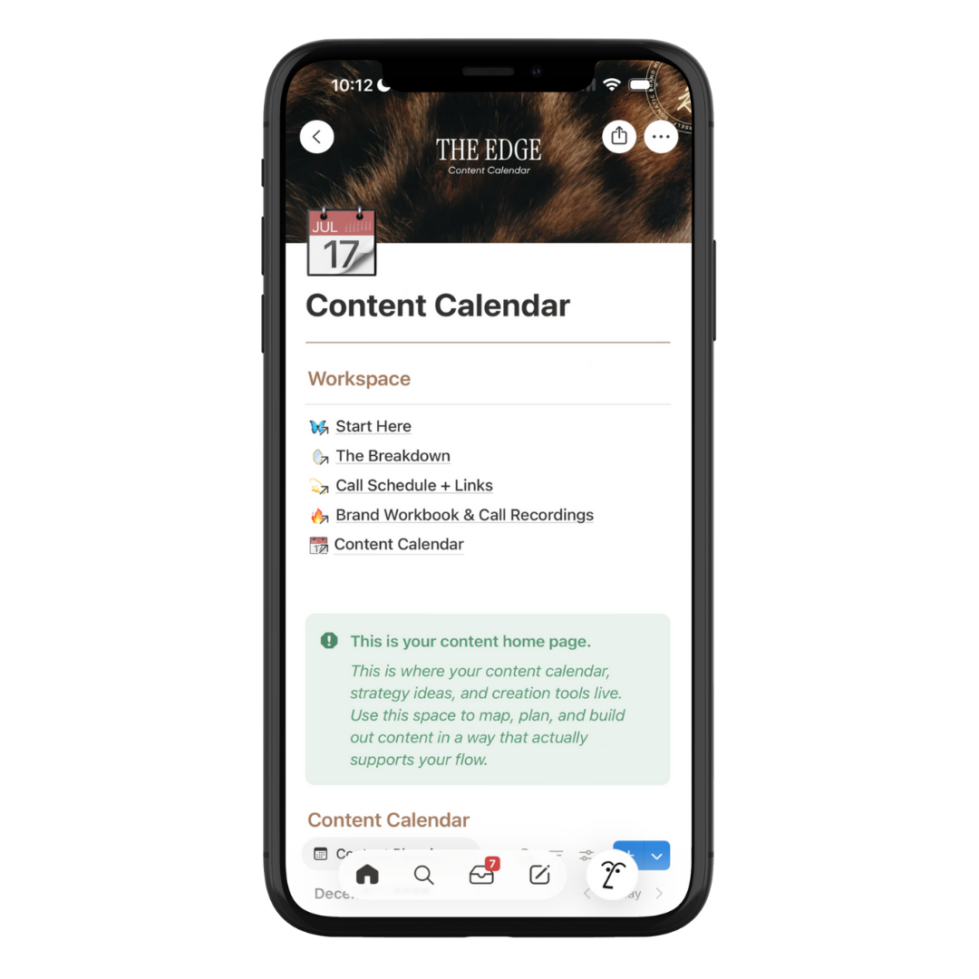 A dedicated Notion portal designed to support clarity, reflection, and integration outside of our live calls.