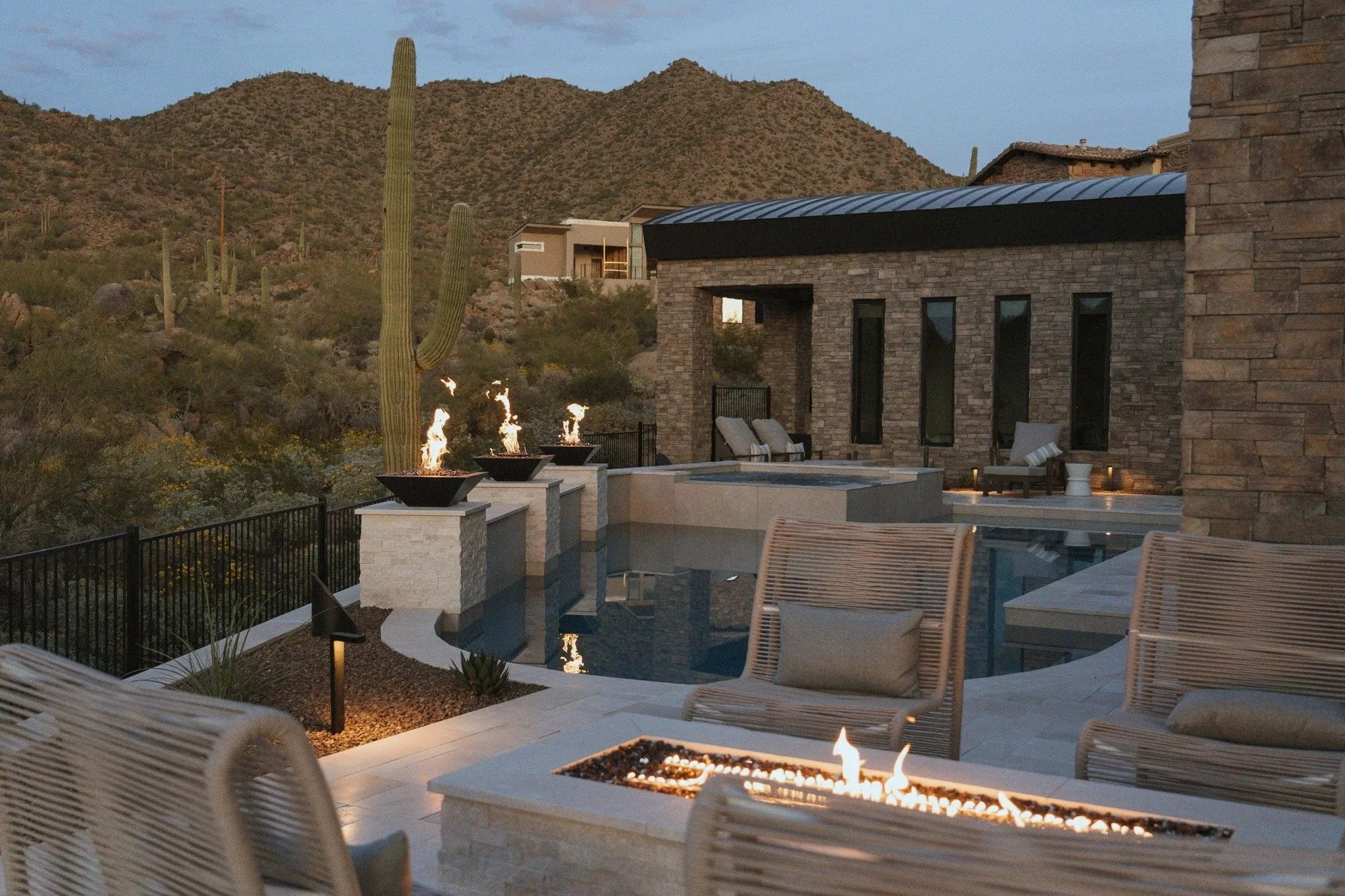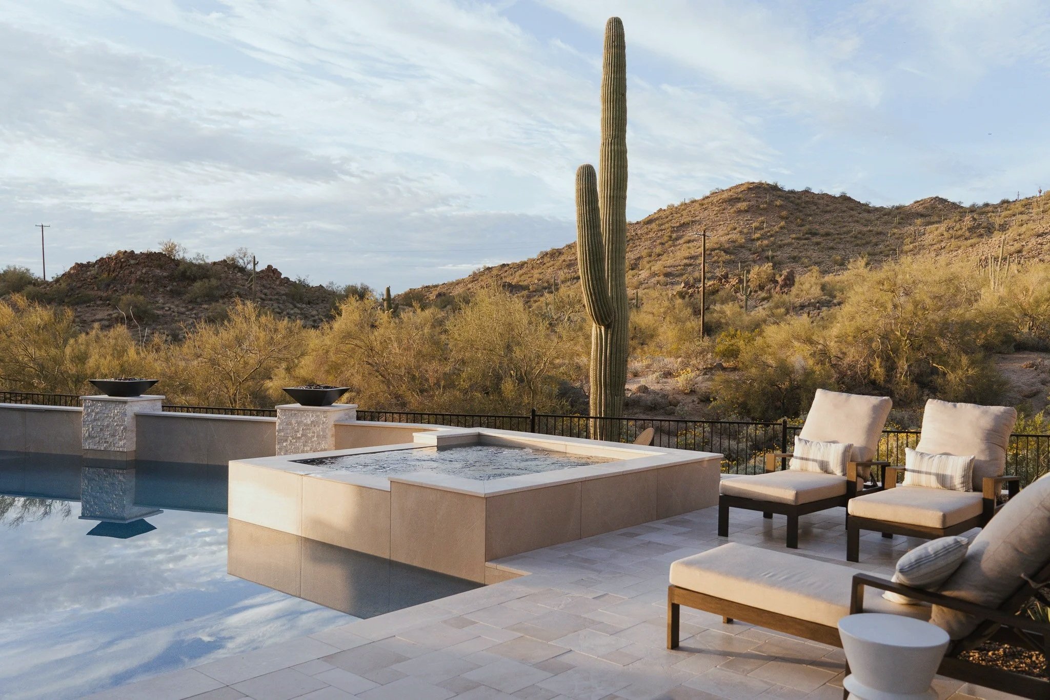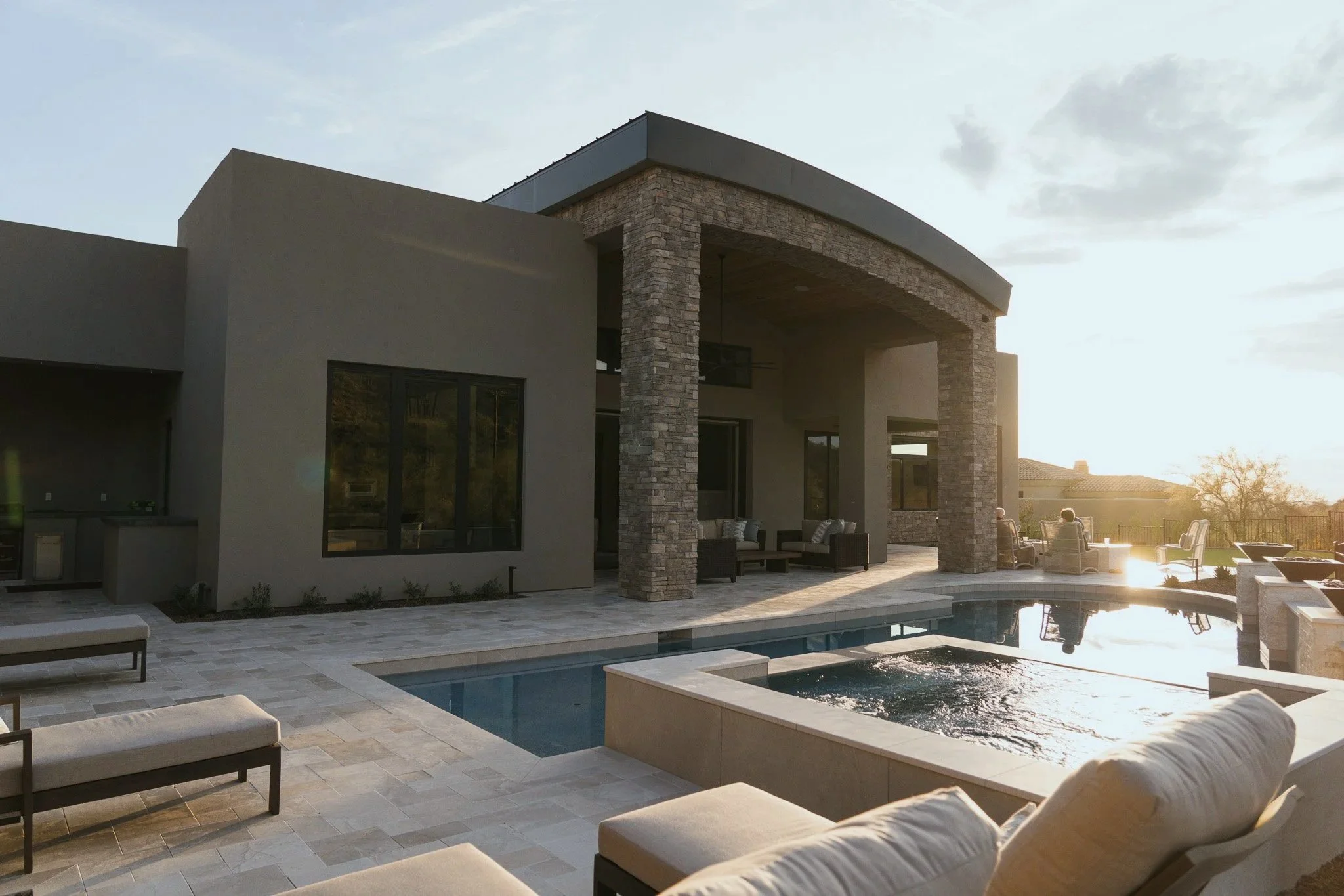 Morning light pours into the living areas, the desert landscape feels close and comforting, and the outdoor space becomes our spot for sunset gatherings and soft moments of reflection.